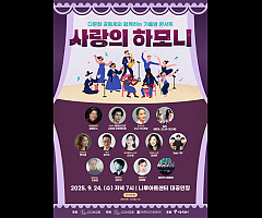 공지 CCM교회-서울대학교기독교총동문회, 다문화 공동체와 함께하는 가을밤 콘서트 ‘사랑의 하모니’ 개최 (최고관리자/2025-09-11 15:10:11) 9월 24일(수) 오후 7시 광진구 나루아트센터 대공연장, 전석 무료2025년 9월 9일 -- 서울특별시 종교계 문화행사 지원사업에 선정된 ‘다문화 공동체와 함께하는 가을밤 콘서트…) 09-11 2053