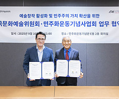 공지 민주화운동기념사업회-한국문화예술위원회, 예술창작 활성화 및 민주주의 가치 확산을 위한 MOU 체결 (최고관리자/2025-09-11 15:14:14) 민주화운동기념관 거점으로 문화예술 프로그램 공동 운영민주주의와 예술이 만나는 협력 모델 개발예술을 통한 민주주의 가치 확산과 국민 문화 향유 기회 확대 기대2025년 9월 10일 …) 09-11 2911
