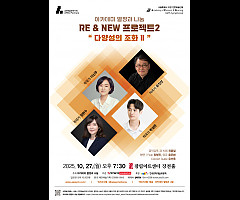 공지 아카데미 열정과 나눔, 프로젝트 콘서트 ‘RE & NEW 프로젝트2 - 다양성의 조화Ⅱ’ 개최 (최고관리자/2025-10-17 16:50:11) 아카데미 열정과 나눔, 한국 창작음악 공연으로 성찰하는 사회적 가치서울특별시 지정 전문예술단체 아카데미 열정과 나눔(예술감독 진윤일, APS)이 오는 10월 27일(월) 오후 7시…) 10-17 1296