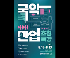 공지 국악의 미래 비전과 산업으로서의 확장 가능성 조망 ‘국악문화산업 초청 특강’ 개최 (최고관리자/2025-05-30 15:14:39) 6. 10.(화)~13.(금) 4일간 국악을 문화산업으로 접근하는 맞춤형 특강 운영‘제1회 국악의 날’ 및 ‘국악주간’ 연계로 국악의 미래 비전을 모색하는 자리최철기·이동준·정구호…) 05-30 4149