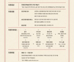 공지 전통공연예술진흥재단, 공연 및 음반 홍보 필요한 예술인 지원 (최고관리자/2024-09-20 14:45:20) 예술인이 창작에만 집중하도록 돕는 ‘전통공연예술 홍보마케팅 지원사업’ 운영언론홍보 컨설팅, 보도자료 감수·배포 지원 및 언론홍보 실무교육 진행매월 10일부터 19일 재단 이메일로 …) 09-20 5209